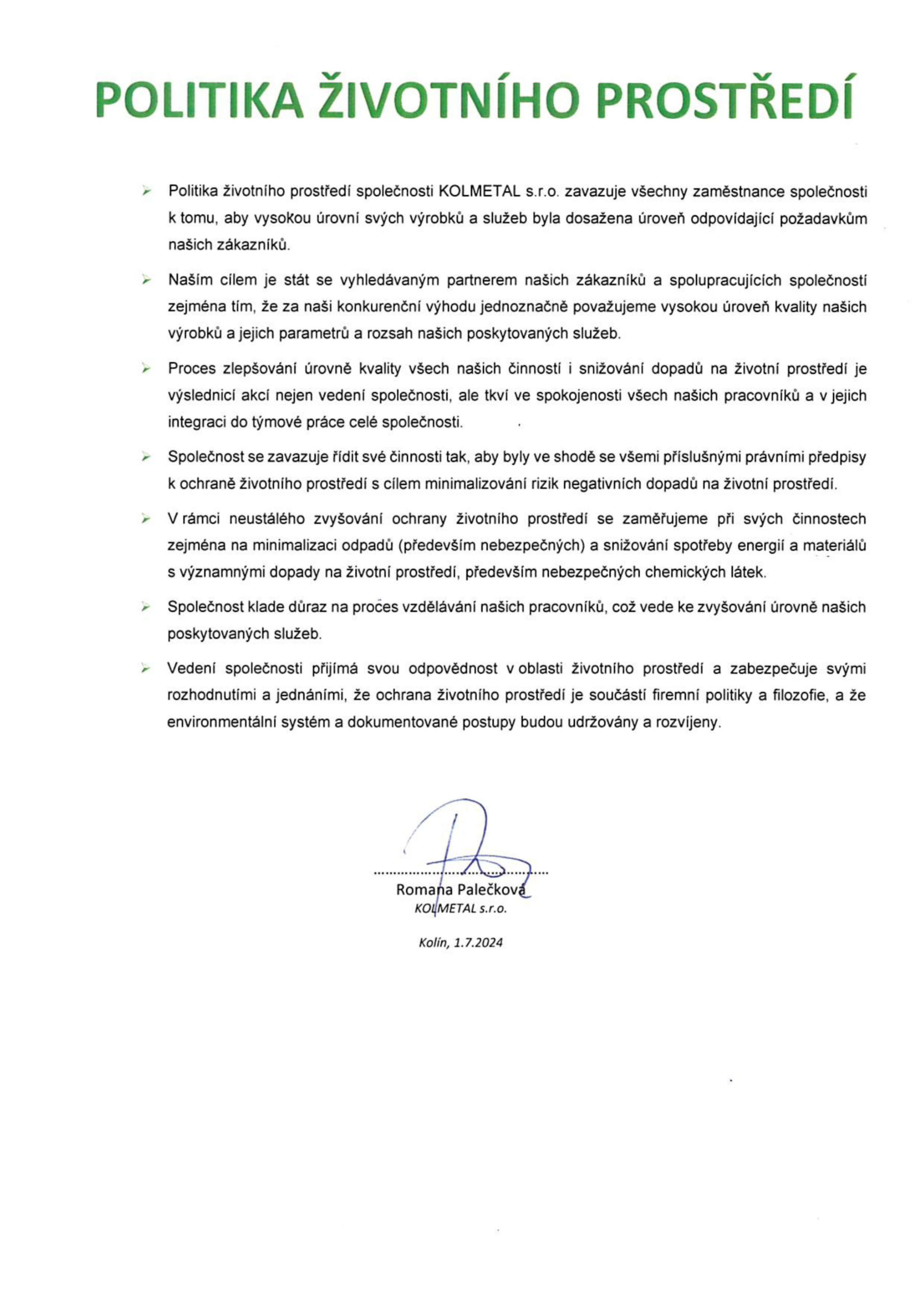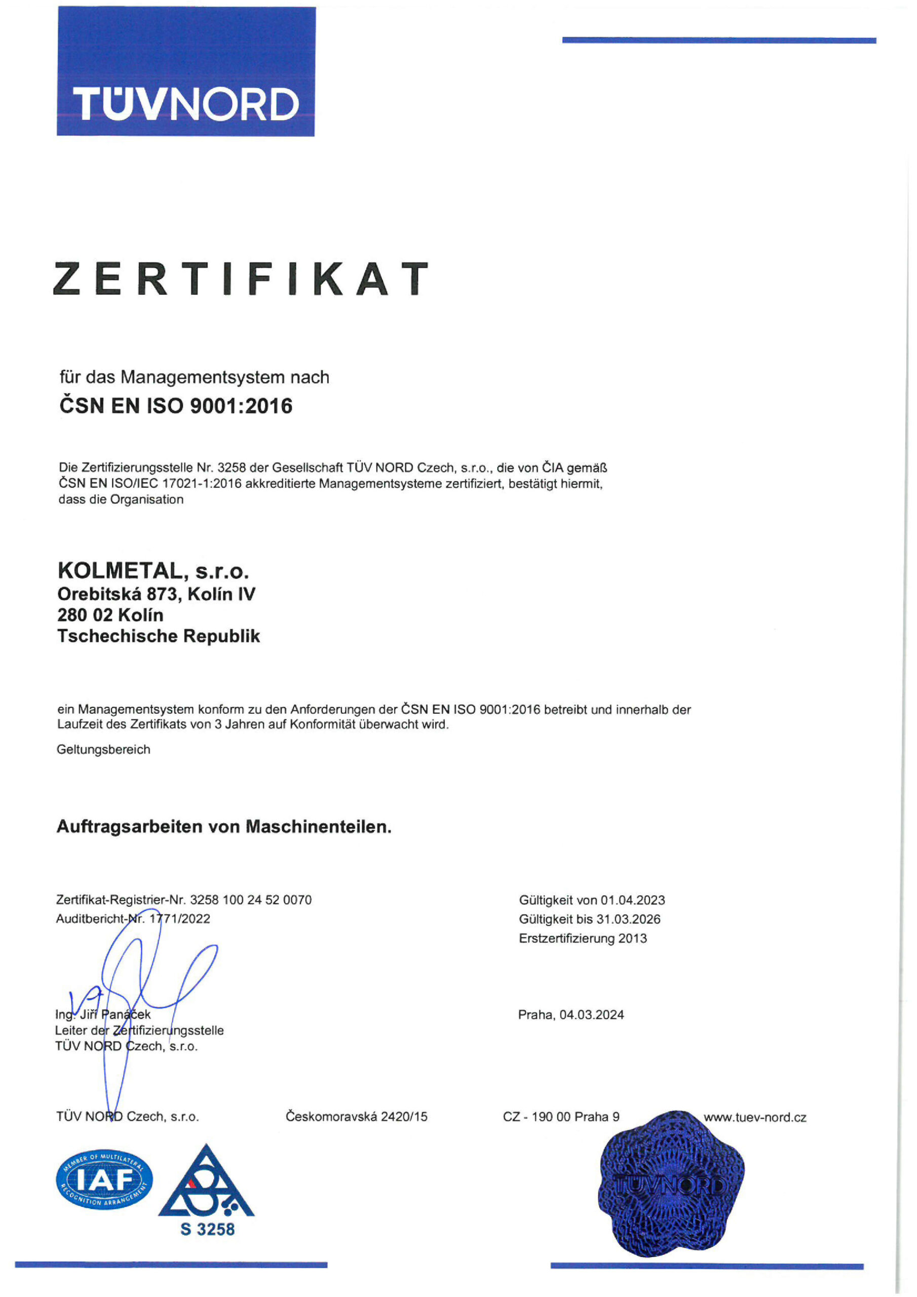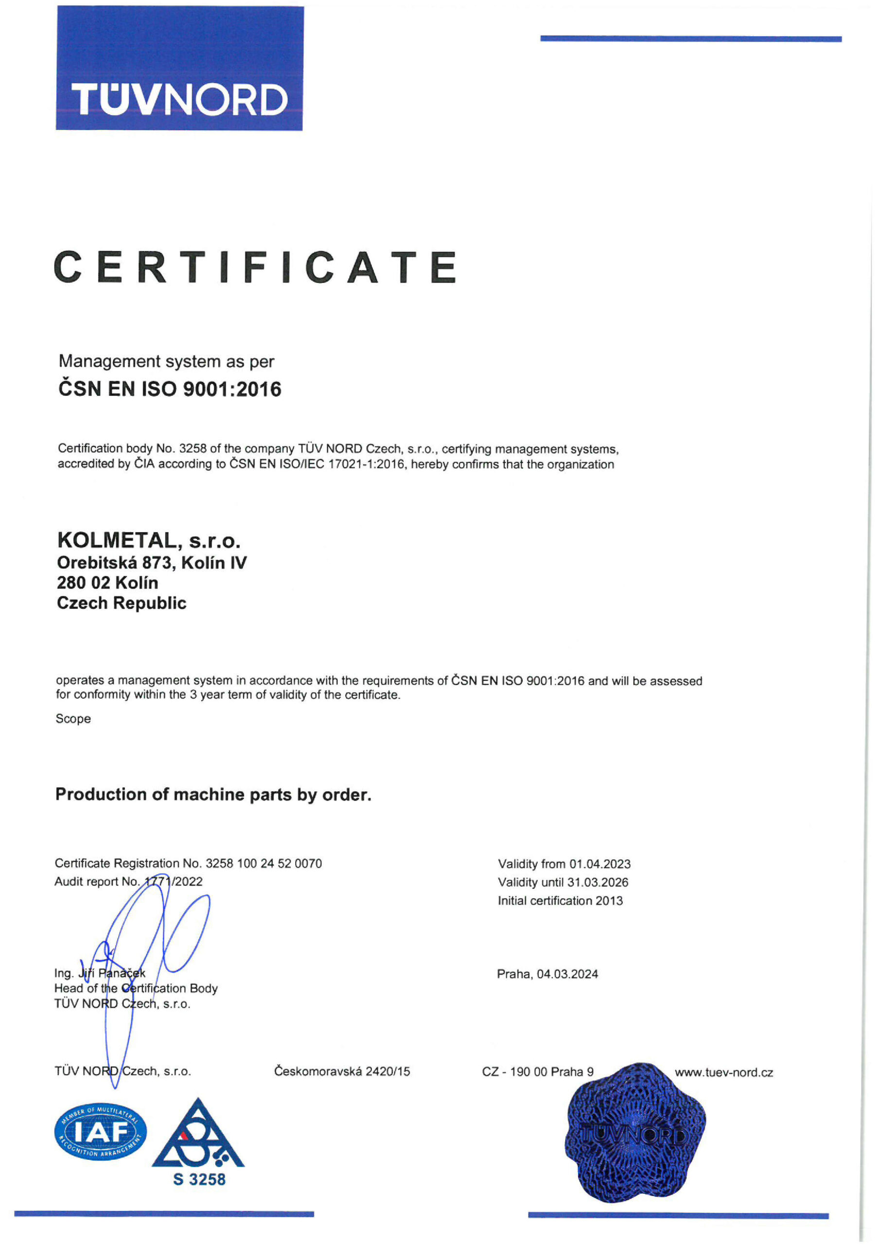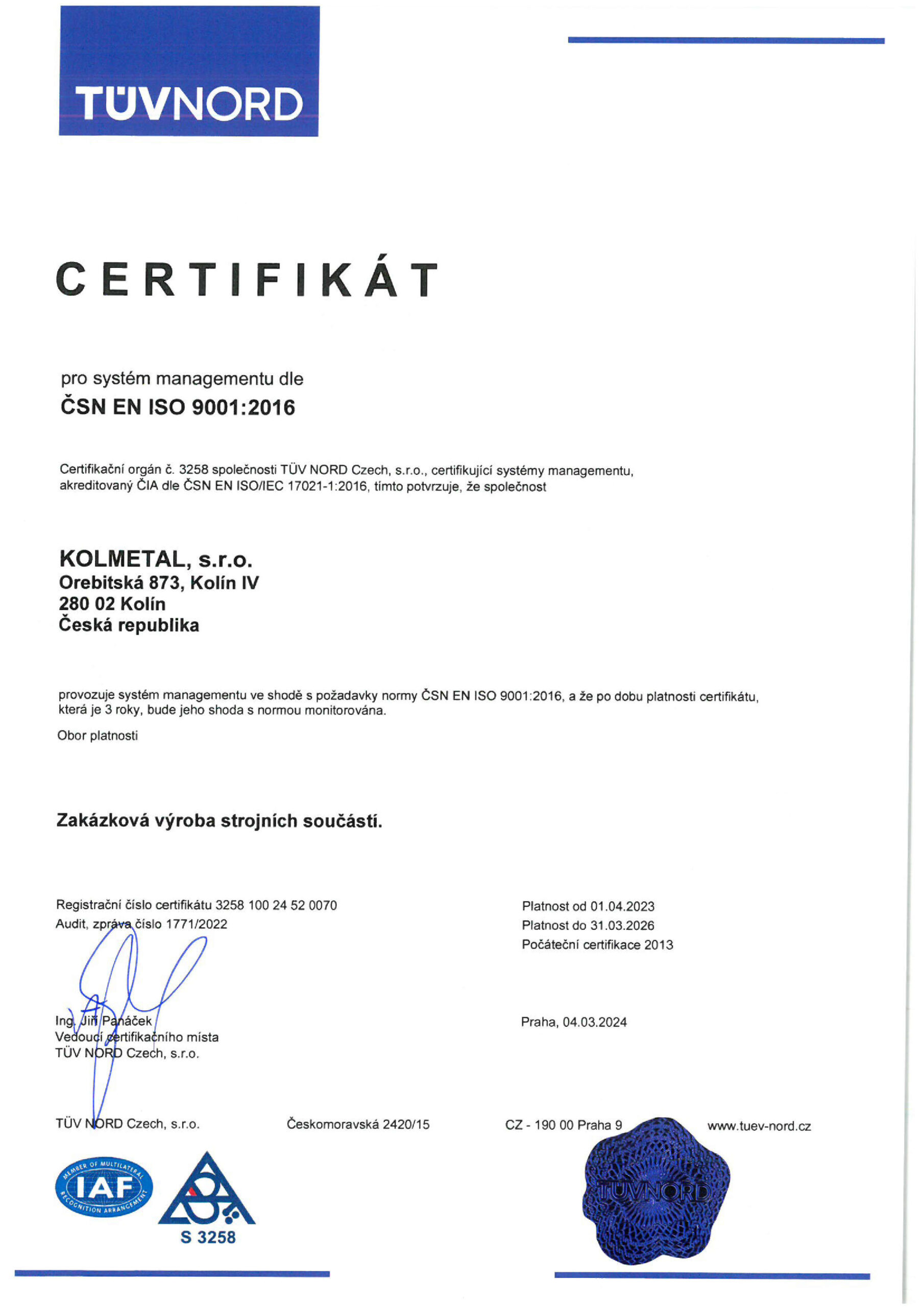 Prvním milníkem je rok 1997, kdy byla založena společnost KOLMETAL, s.r.o. specializovaná na kusovou i sériovou zakázkovou výrobu v oblasti kovoobrábění.